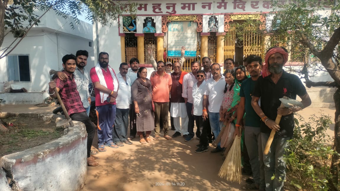 भारतीय जनता पार्टी कोटा मंडल नगर द्वारा प्रधानमंत्री नरेंद्र मोदी जी के आवाहन पर राम मंदिर अयोध्या प्राण प्रतिष्ठा होनी है राम मंदिर प्राण प्रतिष्ठा के उपलक्ष में भारतवर्ष में सभी मंदिरों में देवस्थलो में 14 जनवरी से 22 जनवरी तक साफ सफाई अभियान होना है आज राम मंदिर पढ़ाओ पारा से साफ सफाई अभियान का शुभारंभ हुआ भारतीय जनता पार्टी के उपस्थित कार्यकर्ता वेंकटलाल अग्रवाल जिला संयोजक सांस्कृतिक प्रकोष्ठ जिला बिलासपुर महाराज सिंह नायक मंडल अध्यक्ष कोटा मंडल सुलेस पांडे मंडल महामंत्री कोटा दुर्गेश साहू मंडल उपाध्यक्ष कोटा प्रदीप कौशिक सांसद प्रतिनिधि मुरारी लाल गुप्ता पूर्व नगर पंचायत अध्यक्ष गन्नू गुप्ता पूर्व एल्डर मैन अमरनाथ साहू पार्षद लखन साहू पार्षद सविता नामदेव अध्यक्ष महिला मोर्चा कोटा मंडल अंजना चौक से पूर्व पार्षद गन्नू गुप्ता पूर्व एल्डर मैन मनीष कौशिक युवा मोर्चा महामंत्री मंडल कोटा राजू साहू राहुल सिंह विष्णु मरावी रूप किशोर अग्रवाल प्रवीण कोलआदि बहुत से कार्यकर्ता उपस्थित थे
