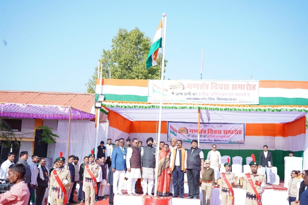 करगी रोड कोटा डी के पी हायर सेकेंडरी स्कूल आत्मानंद इंग्लिश मीडियम के प्रांगण में आयोजित 26 जनवरी गणतंत्र दिवस का कार्यक्रम हर्षोल्लास के साथ मनाया गया आयोजक नगर पंचायत कोटा मुख्य अतिथि माननीय भूपेंद्र सवनी प्रदेश उपाध्यक्ष भारतीय जनता पार्टी अध्यक्षता श्रीमती अमृता प्रदीप कौशिक अति विशिष्ट अतिथि डॉ ललित मखीजा विशिष्ट अतिथि मोहित जायसवाल जिला महामंत्री भारतीय जनता पार्टी लव कुश कश्यप प्रदेश कार्य समिति सदस्य भारतीय जनता पार्टी रामलाल साहू प्रदेश कार्य समिति सदस्य किसान मोर्चा वेंकट लाल अग्रवाल संयोजक सांस्कृतिक प्रकोष्ठ जिला बिलासपुर भारतीय जनता पार्टी अजय अग्रवाल उपाध्यक्ष नगर पंचायत कोटा समस्त पार्षद गण भारतीय जनता पार्टी के वरिष्ठ कार्यकर्ता अधिकारी कर्मचारी शिक्षक शिक्षिका छात्र-छात्राएं सम्माननीय नगर वासी पत्रकार बंधु की उपस्थित में गरिमा में कार्यक्रम संपन्न हुआ मुख्य अतिथि द्वारा राष्ट्रीय ध्वज फराकर माननीय मुख्यमंत्री विष्णु देव साय जी के द्वारा जनता के नाम प्रेषित संदेश वाचन किया और शासन की जन कल्याणकारी योजनाओं कार्यक्रमों और आगामी कार्य योजना के संबंध में जानकारी दी उन्होंने परेड का निरीक्षण किया और परेड की सलामी ली साथ ही नागरिकों को गणतंत्र दिवस की शुभकामनाएं दी आयोजित समारोह में नृत्य संगीत के रंगारंग कार्यक्रम आयोजित किया गया स्कूली छात्र-छात्राओं ने मनमोहक नृत्य प्रस्तुत किया जो दर्शकों के ध्यान आकर्षण का विशेष केंद्र बना रहा उत्कृष्ट कार्य हेतु वरिष्ठ नागरिक को एवं संस्था को सम्मान प्रदान किया गया उत्कृष्ट कार्य के लिए शिक्षक को सम्मान किया गया विभिन्न क्षेत्रों में उत्कृष्ट प्रदर्शन के लिए 40 स्कूली छात्र-छात्राओं को सम्मान किया गया नगर पंचायत सीएमओ द्वारा आभार प्रदर्शन किया गया हजारों की संख्या में नागरिक एवं अभिभावक उपस्थित थे