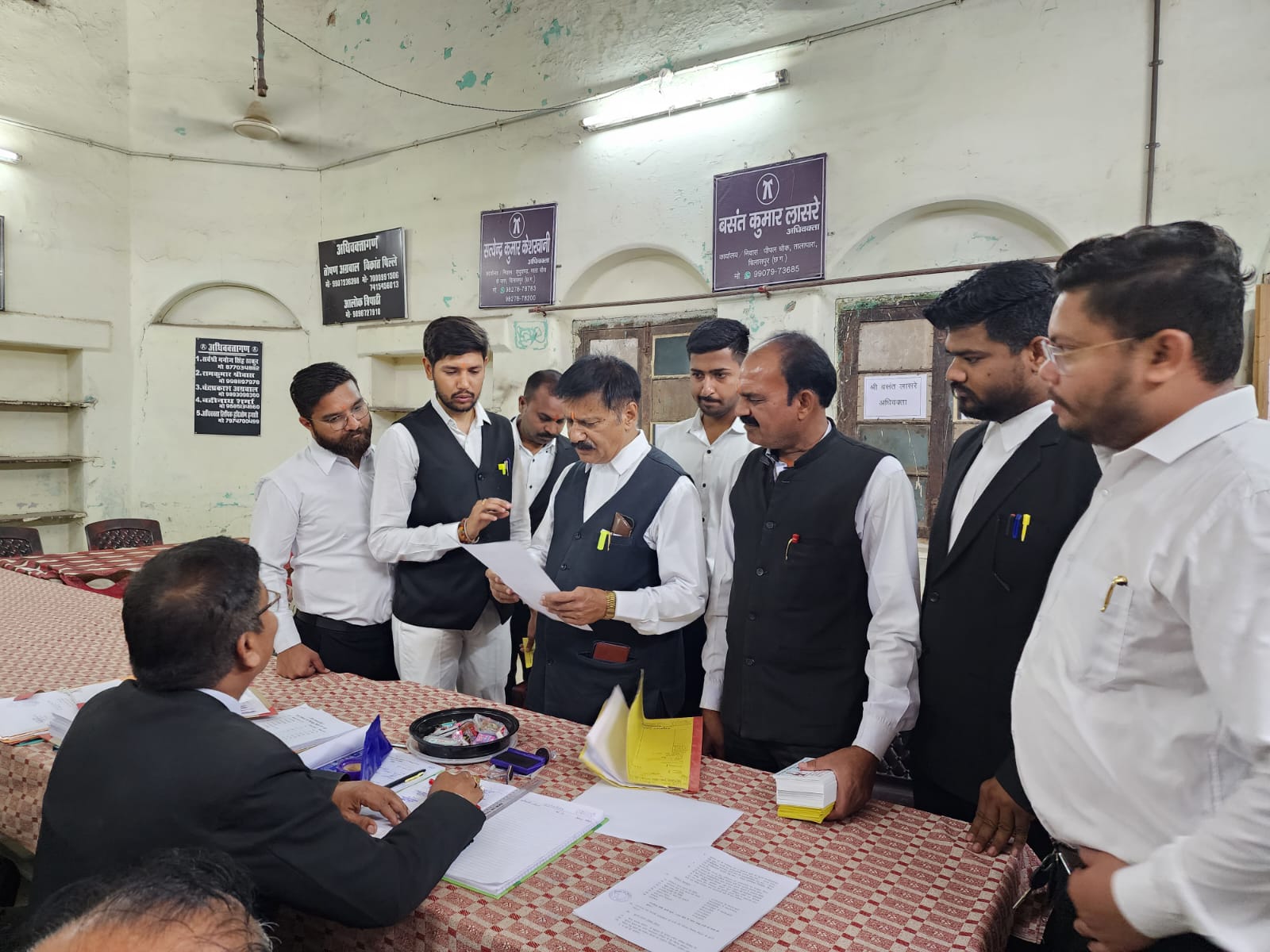 आज 5 मार्च 2024 को जिलाअधिवक्ता संघ के अध्यक्ष* पद के प्रत्याशी आनंद कंद तिवारी जी ने जिला न्यायालय में प्रचार करके अपने समर्थन में वोट मांगे और बार को मजबूत, वकीलों के आर्थिक उन्नयन,एडवोकेट प्रोटेक्शन एक्ट, परिसर में स्वास्थ्य केंद्र,साफ शौचालय, पार्किंग व्यवस्था, वकीलों का उचित चैंबर व मूलभूत सुविधाओं और आवश्यकताओं को जीत के पश्चात अधिवक्ताओं व संघ के अन्य पदाधिकारी के साथ मिलकर पूरा करने की बात कही
