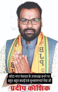 भारतीय जनता पार्टी भाजपा से निर्विरोध नगर पंचायत-उपाध्यक्ष चुने गए प्रदीप कौशिक जी नगर पंचायत अध्यक्ष सहित 15 वार्ड-पार्षदों पदाधिकारी एवं युवा कार्यकर्ताओं ने दी बढ़ चढ़कर बधाई