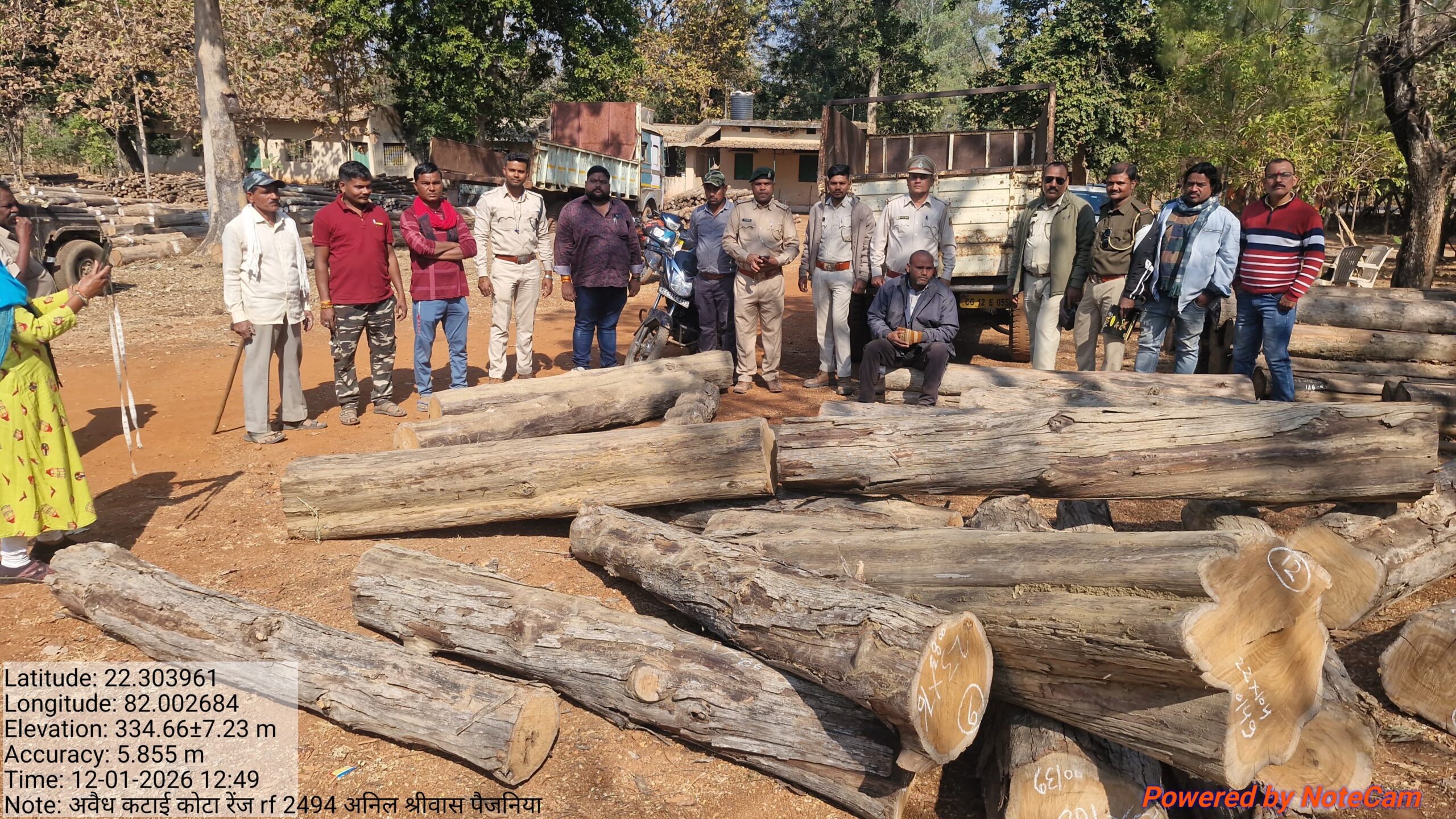 वन मंडल अधिकारी बिलासपुर श्री नीरज सर के निर्देशानुसार एवं उपवन मंडल अधिकारी कोटा श्री अनिल भास्करन साहब के मार्गदर्शन तथा श्री सुरेश कुमार बंजारे वन परिक्षेत्र अधिकारी कोटा के नेतृत्व में मुखबिर से सूचना के आधार पर आज रात्रि 11.01.2026 को अज्ञात व्यक्तियों के द्वारा सागौन प्रजाति की इमारती लड़कियों की अवैध कटाई करके परिवहन किए जाने की सूचना मिलने पर कोटा सर्कल के स्टाफ रात्रि गस्त पर रहे तभी कक्ष क्रमांक RF2494 में एक नग पिकअप वाहन में अज्ञात व्यक्तियों द्वारा सागौन प्रजाति के इमारती लकड़ी लोड किया जा रहा था।